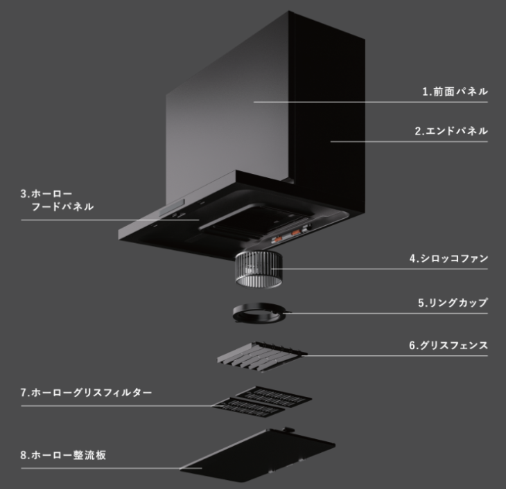今まで掃除が面倒だったファンやフード内部に油がほとんど届かないので、お手入れが簡単です。