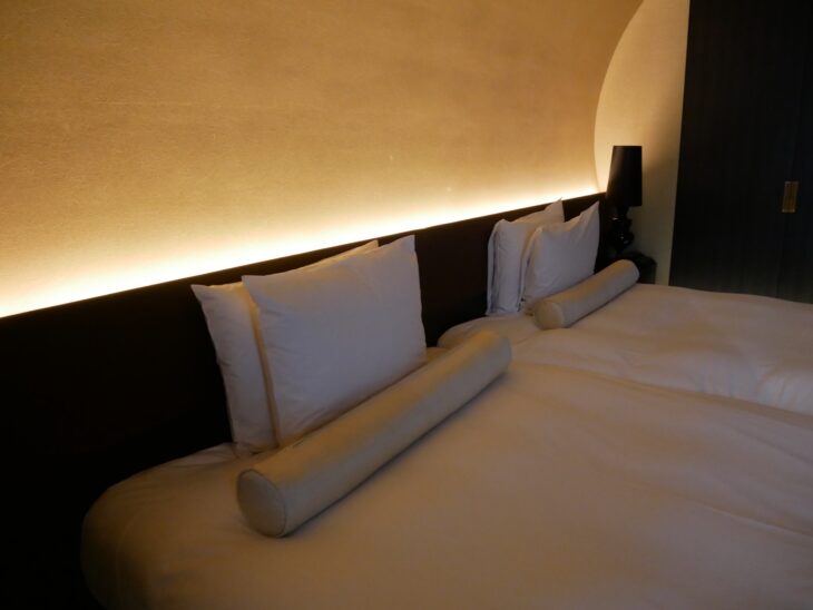 寝室は照明を落とす時間が長いからこそ、素材の質感と色の反射が空気感を左右します。