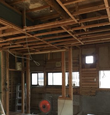 大工さんが天井や壁を解体した後、