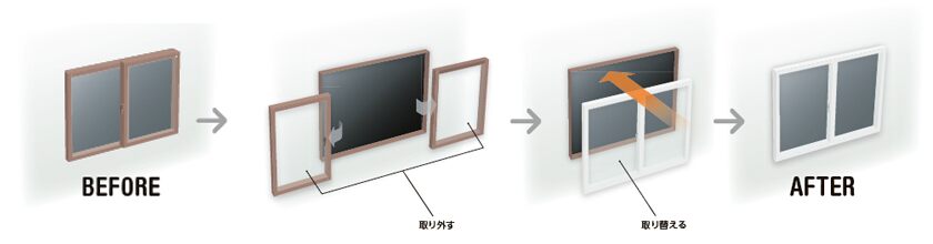 今は、壁を壊さず、足場も組まず、外部の工事もなく、室内の工事だけで『窓』を交換できるんです!