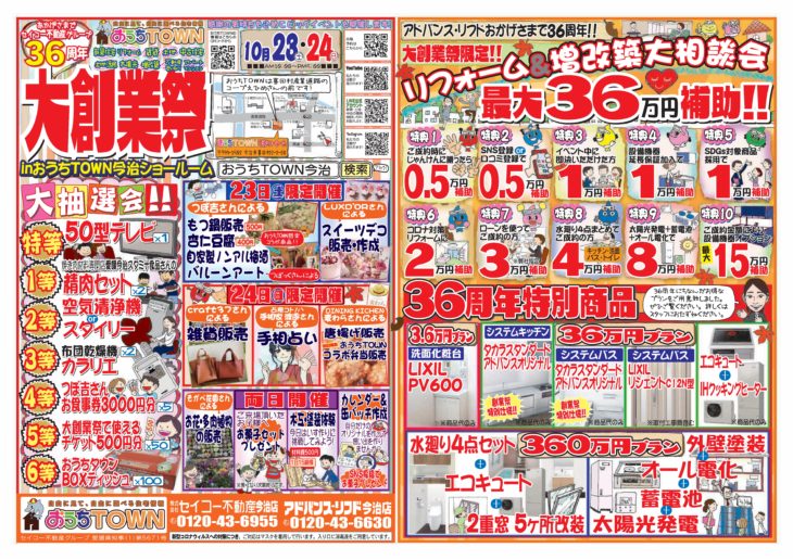 その他、36周年の特別商品や水廻り4点セットの360万円プランなどもご用意しておりますので、ぜひご来店ください!