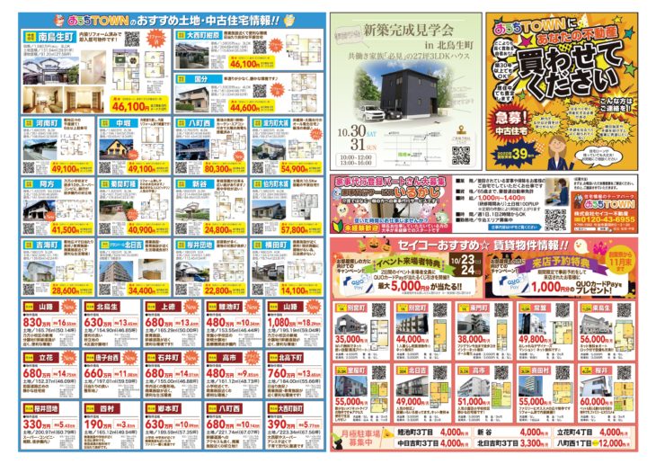 チラシの裏には、賃貸や新築・土地の情報も記載されていますので、ぜひご一読ください(^^ゞ