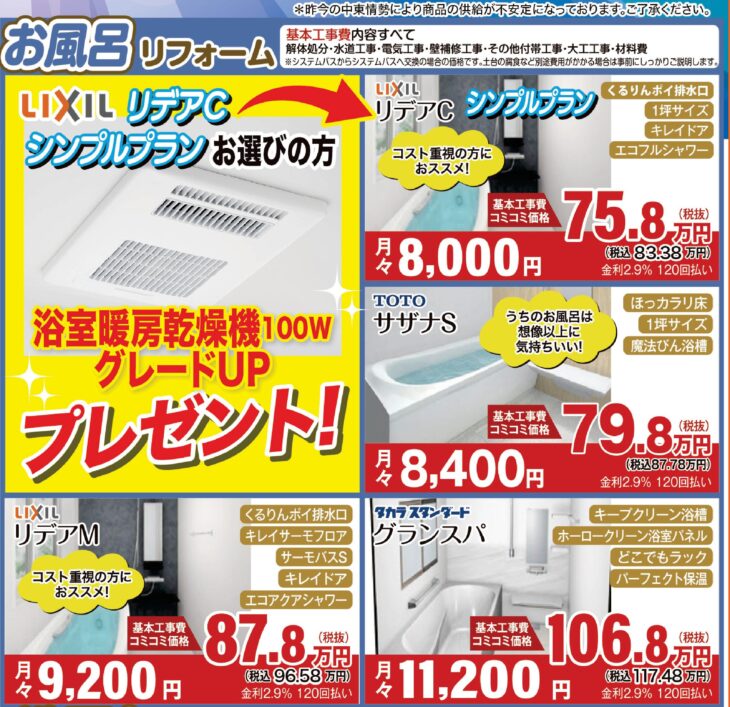 会場 アドバンスリフド今治店 会場住所 愛媛県今治市喜田村2丁目2-20 開催日時 4月25日(土)~5月24日(日) 参加費 無料 一言 「LINEでお見積り」でクオカードペイプレゼント! 備考 補助金活用でお得にリフォームできるチャンス! アクセスマップを確認する