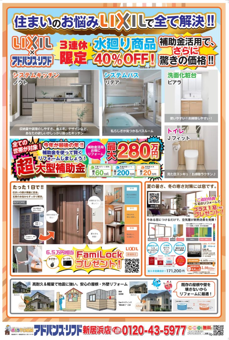 - 3連休限定!水廻りリフォームが今だけ特別価格‼