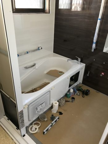 | 施工内容 | システムバス設置・洗面台交換・洗面所クロス貼替 |