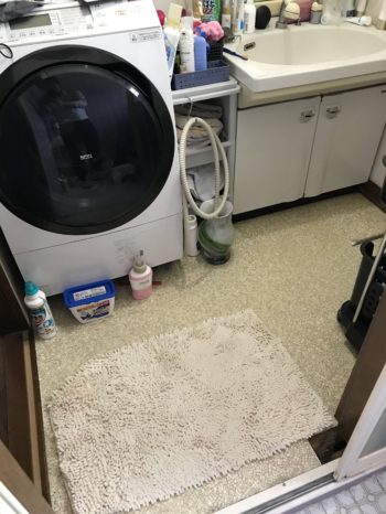 浴室は珍しい寸法で、1坪サイズは設置ができませんが、0.75坪 サイズでは小さくなり過ぎる状態でした。 そのため、サイズのバリエーションが多い、マンション用のシス テムバスをご提案。本体代は少し高くなりましたが、スペースを 最大限活用できました。 洗面所は収納量を増やすために、サイドキャビネット付きの洗面台 を採用。また、洗濯機の上に可動棚を設置して、できる限り収納量 を増やしました。 |