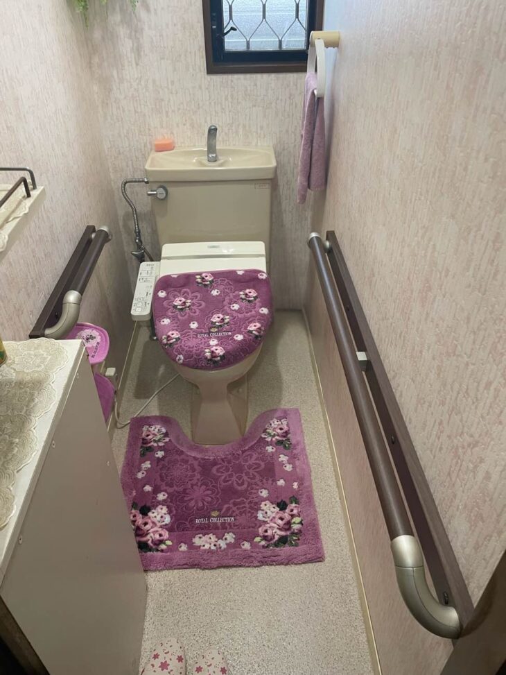 トイレの両側に手摺を設置。立ち座りだけでなく、出入りまでしっかりサポートします 。