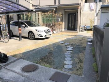 | お客様のご要望 | 駐車場前が、雨が降ると水たまりになり、 家の前が汚れるのを改善したい。 |