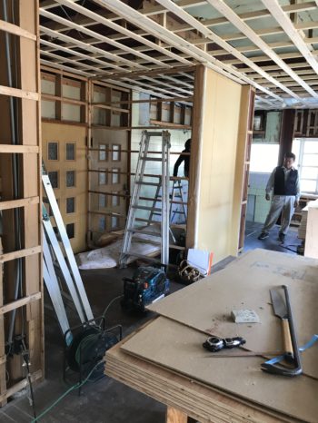 天井断熱施工中。