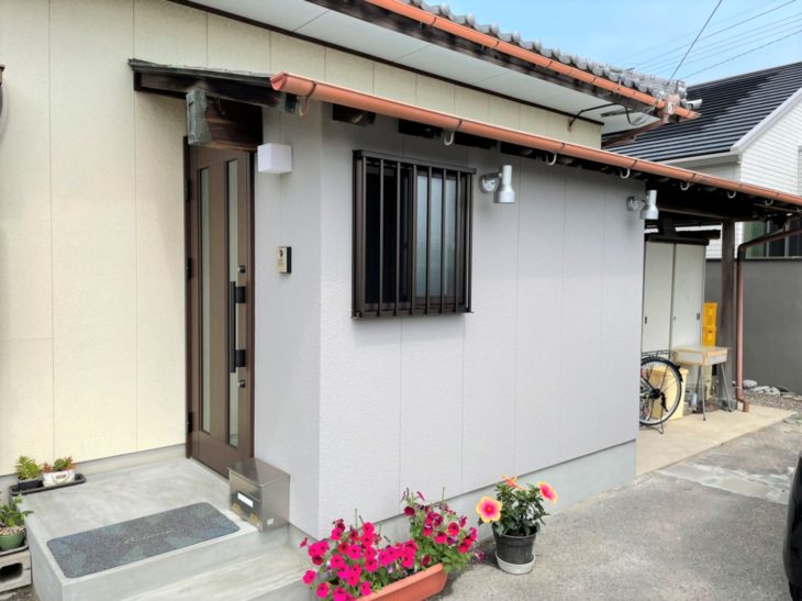 後から増築したとは思えないほどお家に馴染んでいます。勝手口だけどO様にとっては玄関より利用頻度が多いので、勝手口ドアではなく玄関ドアを選びました。