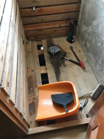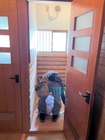 トイレ解体中。住みながらの工事なので生活できるよう1部屋ずつリフォームしていきます。