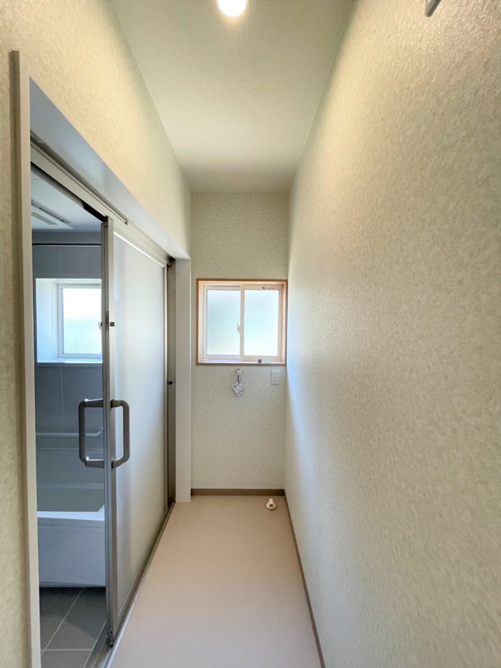 1坪のお風呂を入れるために洗面所はL字型にしました。
