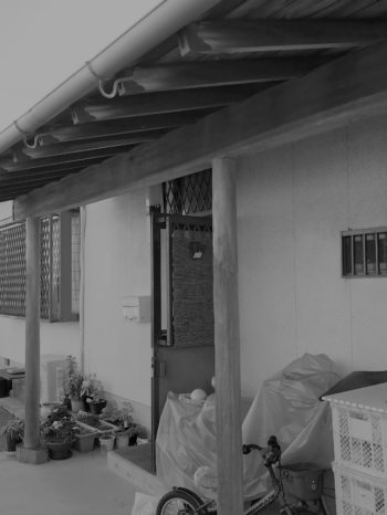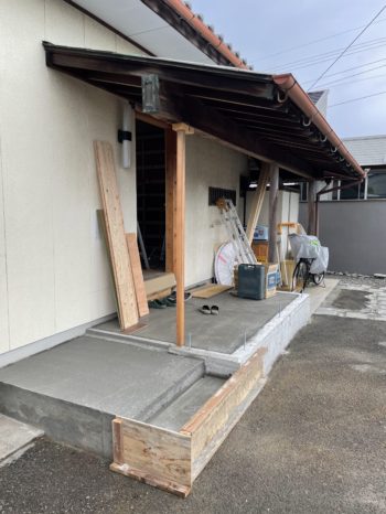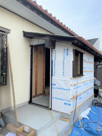勝手口は軒が大きく出ていたので、この軒の屋根を利用して勝手口土間を増築します。