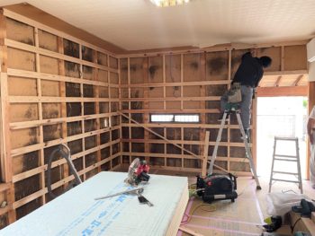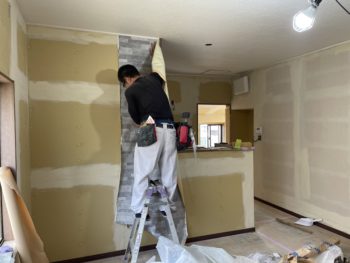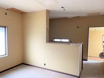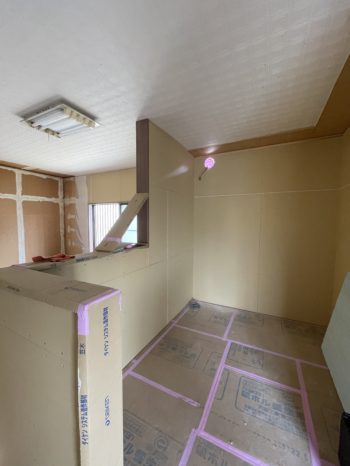 キッチンの壁下地造作中