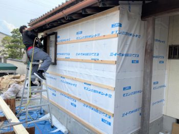 外壁材を貼るための下地をつくっていきます。