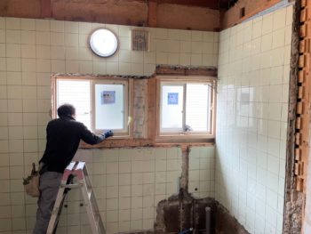 浴室・洗面所は間取りが変わるのに合わせて新しい窓へ交換していきます。