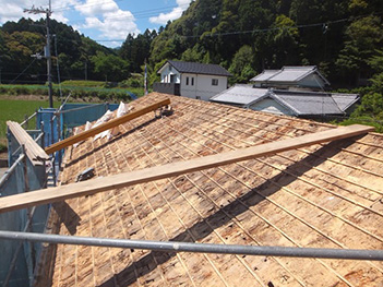 軽量な板金屋根にやり替えるため、既存の瓦をおろしました。