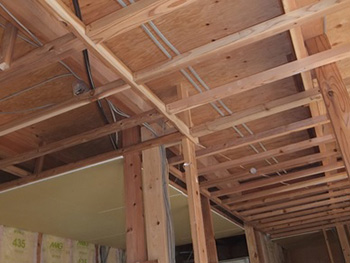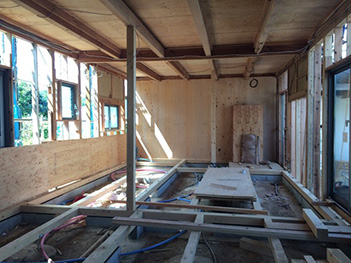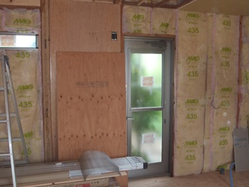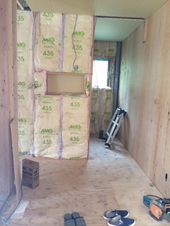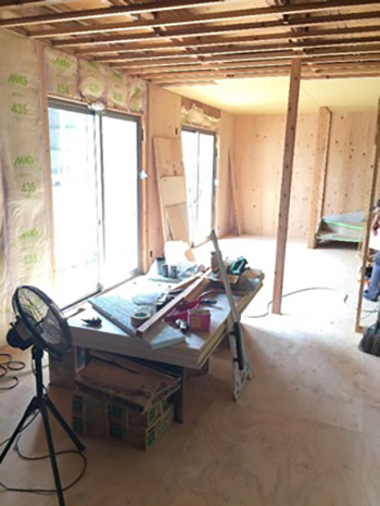 天井を貼り終わりました。玄関のニッチも出来上がっています。