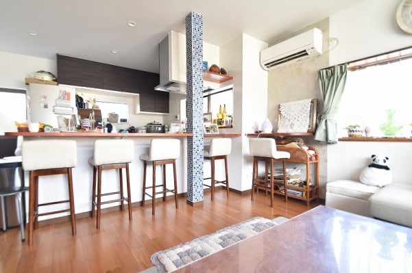 元々のキッチンよりもサイズを大きくして対面式にすることによ り、使い勝手もよく、ご家族と談笑しながらお料理することが 可能になりました。 どうしても残ってしまう柱もタイルを張ることにより、LDKのアクセ ントとして空間がおしゃれになりました。 |