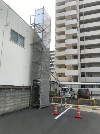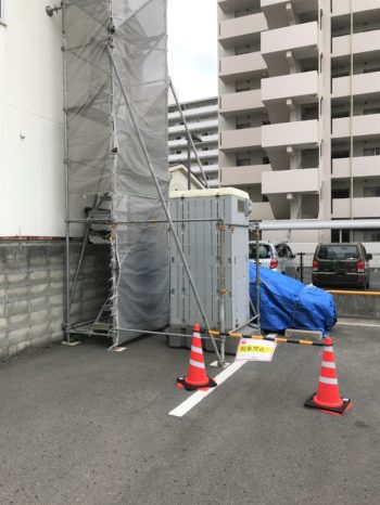 仮設足場設置するため、有料駐車場の一部を借りました。