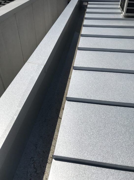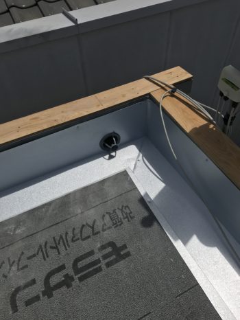 屋根下方部に雨水受けとしての箱樋を設置しました。