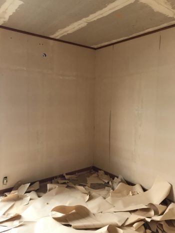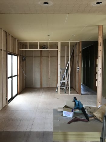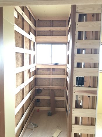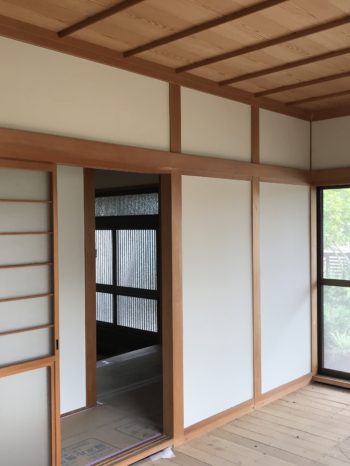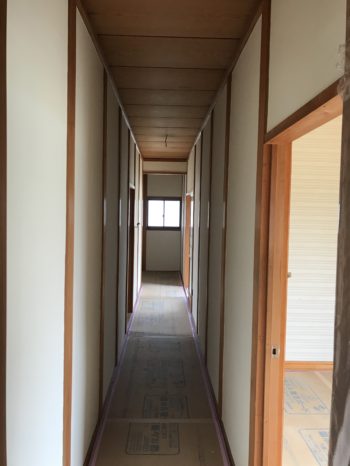 廊下の床貼りが完了。壁の珪藻土塗りも終わりました。