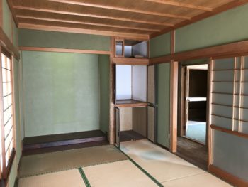 珪藻土の壁は調湿・消臭性能に優れています。薄いグリーンの柔らかく落ち着く空間に仕上がりました。