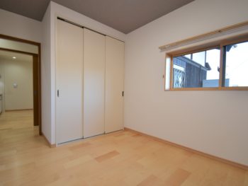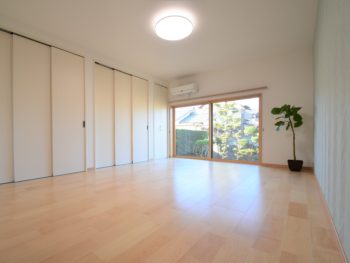 LDK横の寝室です。壁一面の大収納で室内に物が溢れません。