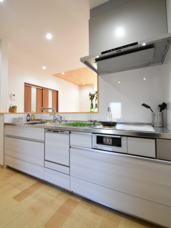 キッチンは人気NO,1のクリナップ「ステディア」を採用。オールステンレスで 丈夫で長持ちします。自動洗浄機能の付いた換気扇も奥様にとって嬉しいポイント。