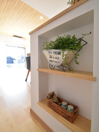 キッチンそで壁に余裕があったので、ここにもニッチを造作しています。