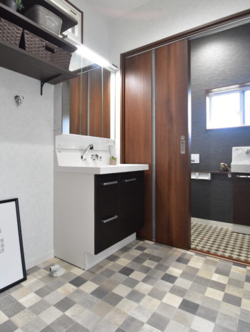 使いやすい正方形の形になった洗面所。