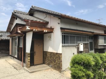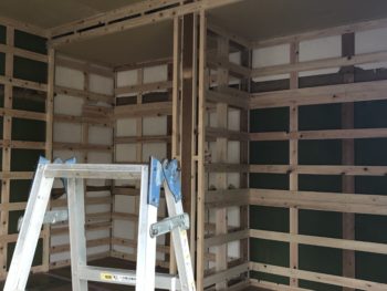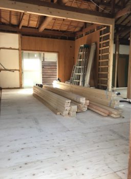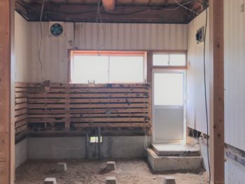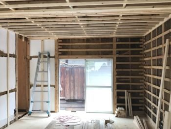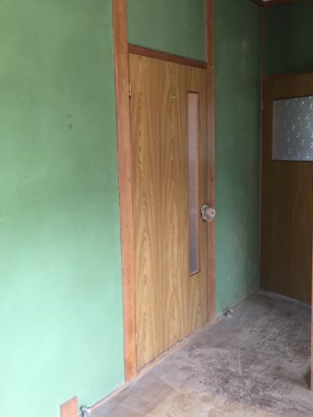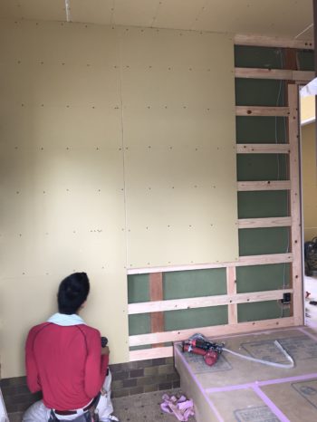 玄関周りは元々柱が見えている真壁でしたが、下地を造作して柱が見えない大壁にしていきます。