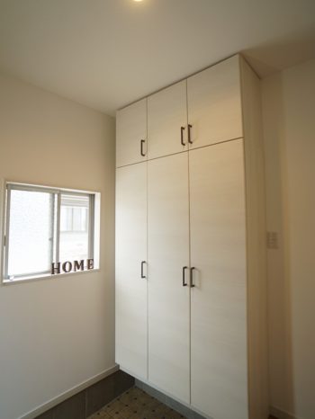 既存収納(写真左側)はリビングに取り込んで広げます。