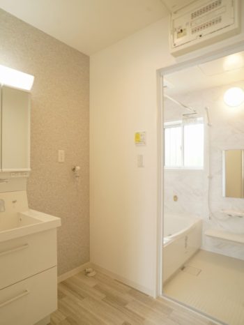 洗面所と浴室は清潔感溢れる明るい空間へ。