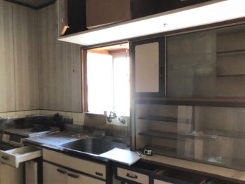 解体後のキッチン。キッチンはリフォーム後も同じ位置に取り付けます。