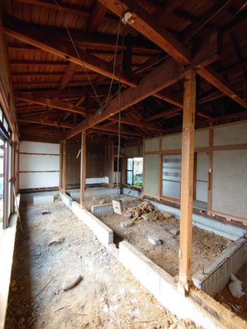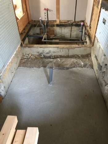 既存浴室を解体し、システムバス用に土間打ちをしました。