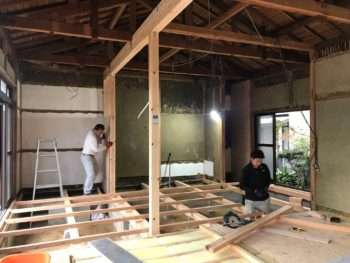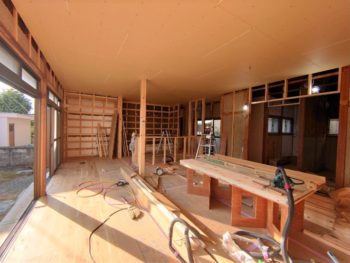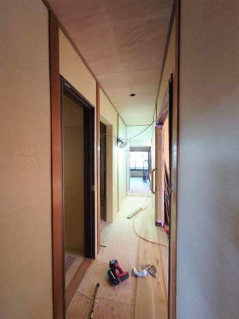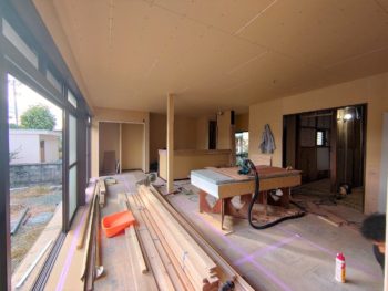 LDKの天井下地が完成。フローリングを貼っていきます。