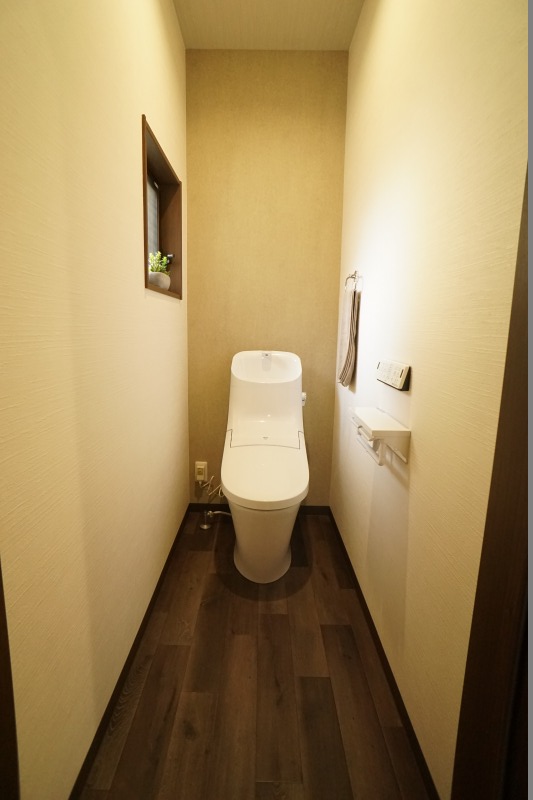トイレがお家の雰囲気に合うように全体的に落ち着いた色合いの空間にしました。