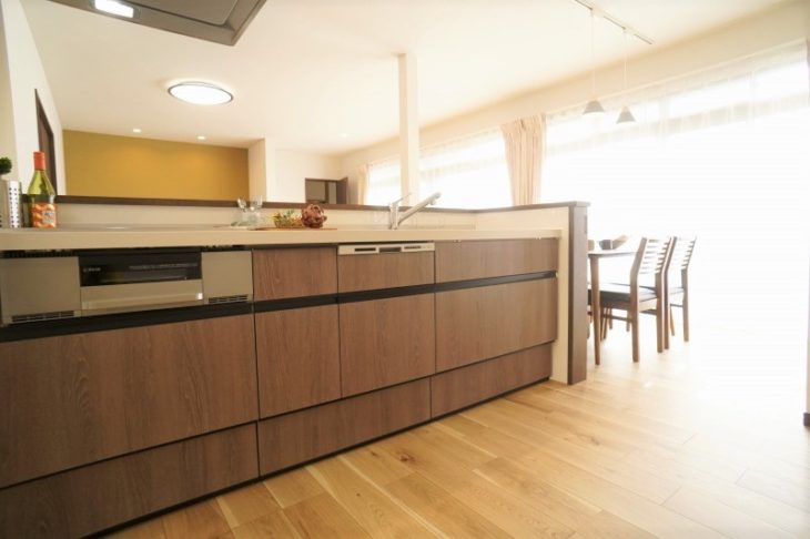 対面キッチンなので、料理をしながら家族と会話したり、テレビを見ることが出来ます。