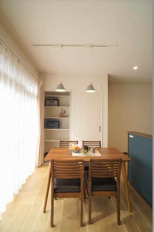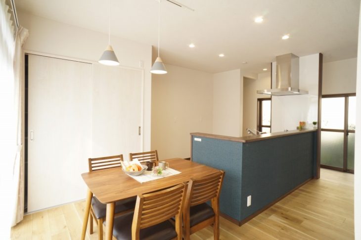 キッチンに横並びでダイニングテーブルを置けるので配膳がラクです。