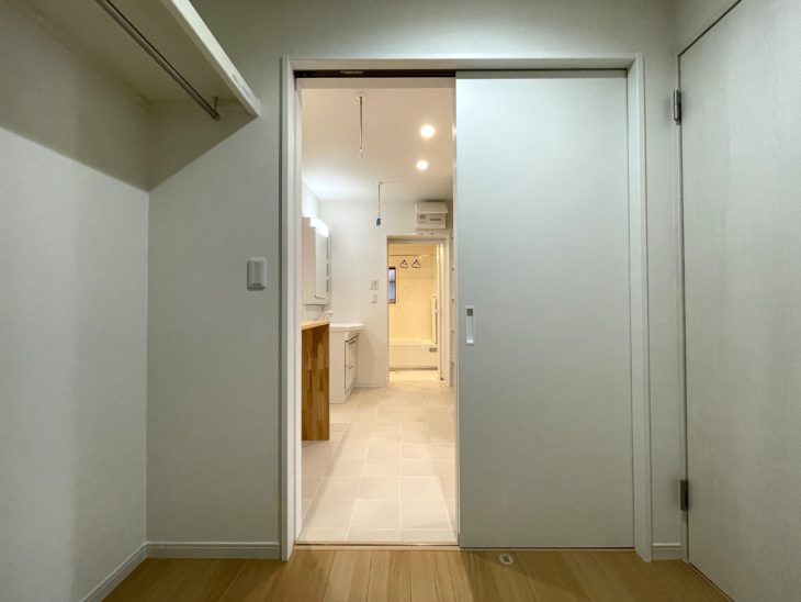 ファミリークロークから洗面所への動線も確保。洗濯物の収納や着替えの準備もスムーズに行えます