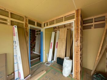 床・天井下地が出来上がり、建具の枠が取付られました