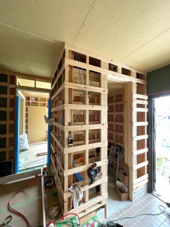 LDK壁下地造作中
