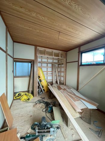 2階和室 クローゼット用の下地造作中