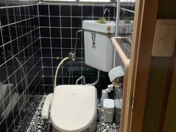 トイレはタイル貼りで、和式トイレをアタッチメントで洋式にしていました