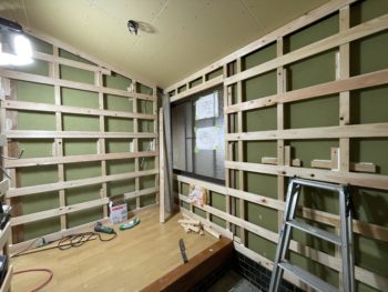 既存壁の上から新しい壁を造作していきます