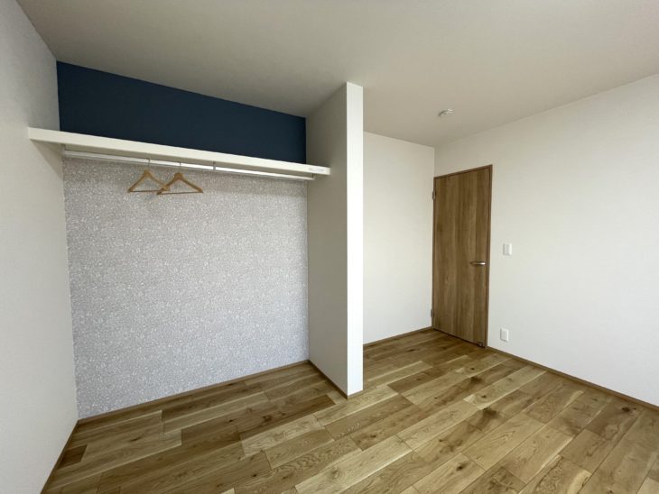 収納背面のアクセントクロスは物が入るとあまり見えなくなりますが、部分的に見えるアクセントでも十分楽しめます