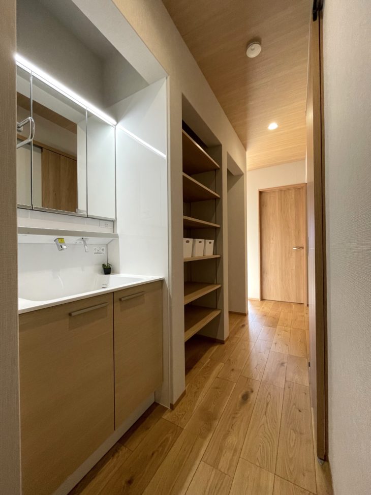 洗面台・可動棚・洗濯機スペースと横並びになっています