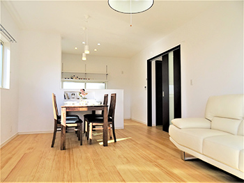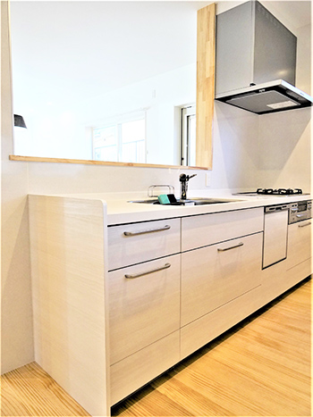 シンプルな内装と対面キッチンを採用しました。