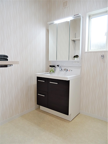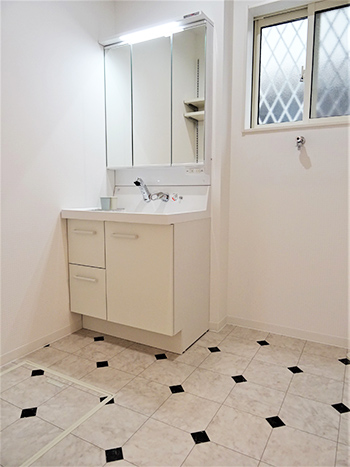 清潔感がある白を基調とし、すっきりとした洗面所に変身しています。